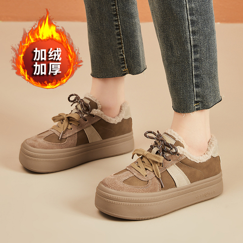 ファッションの厚い底の高さはベルベットの保温カジュアルシューズの女性2024秋冬の新型の柔らかい底の滑り止めの耐摩耗性が痩せた板靴を見せている