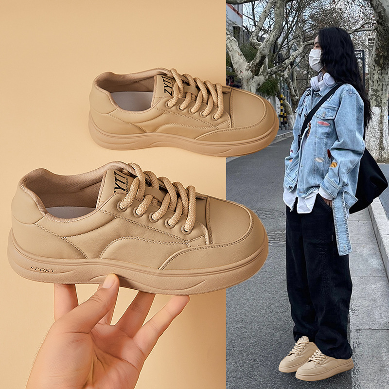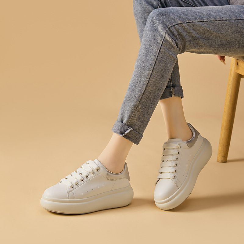 厚底で身長アップ効果のある本革のおしゃれなカジュアルシューズ レディース 2025年秋新作 軽量で通気性があり快適でどんなスタイルにも合う白いスニーカー トレンド