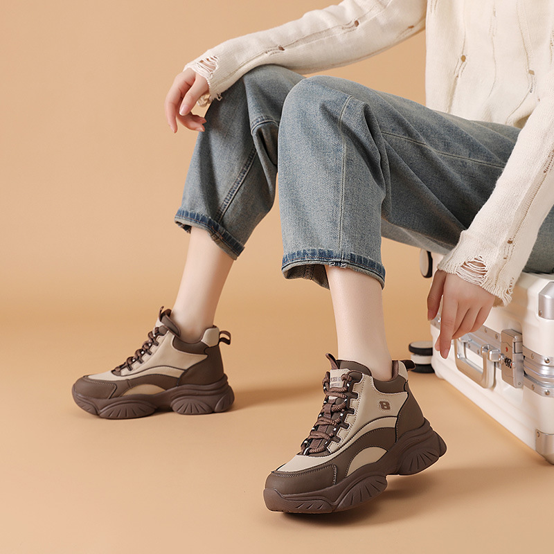 ファッションの流行の高組の厚い底の高くなる板の靴の女性の2024秋冬の新型の快適な百合のレジャーの運動のお父さんの靴