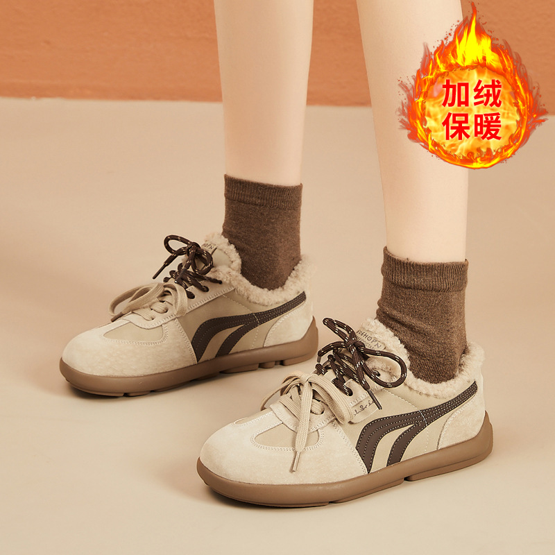 ファッションの厚い底にベルベットの保温徳訓靴の女性2024秋冬キャンパス風の新しいベルベットの顔には快適なカジュアルシューズがついている