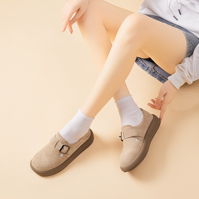丸首のレトロなカジュアルシューズの女性2024秋冬の新しいシンプルなストラップが快適で厚い底が高くなります。