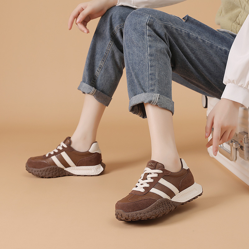 本革の小さい衆の厚い底の爆発の徳訓の靴の女性の2024秋の新型の快適な運動のランニングはカジュアルな靴の潮を合わせます。