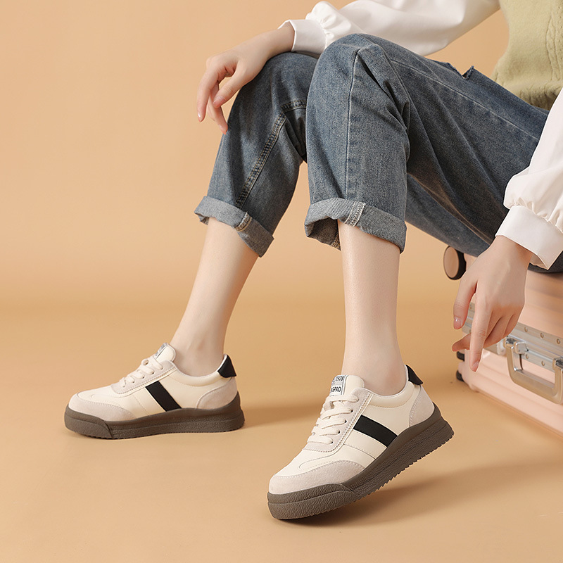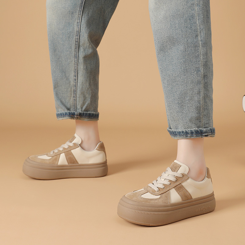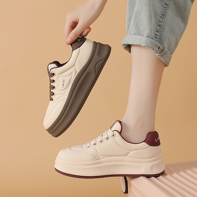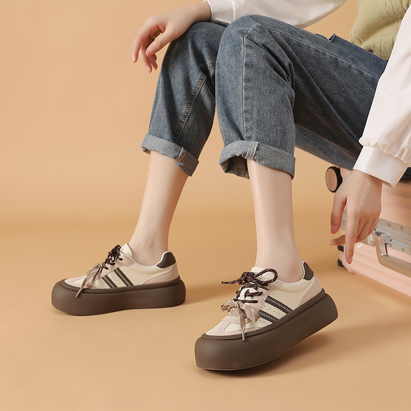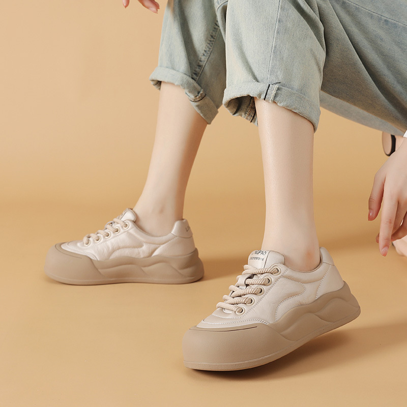 2025年秋新作 レディース ホワイトスニーカー 快適 厚底 身長アップ 本革 軽量 韓国風 万能 カジュアルシューズ スニーカー トレンド