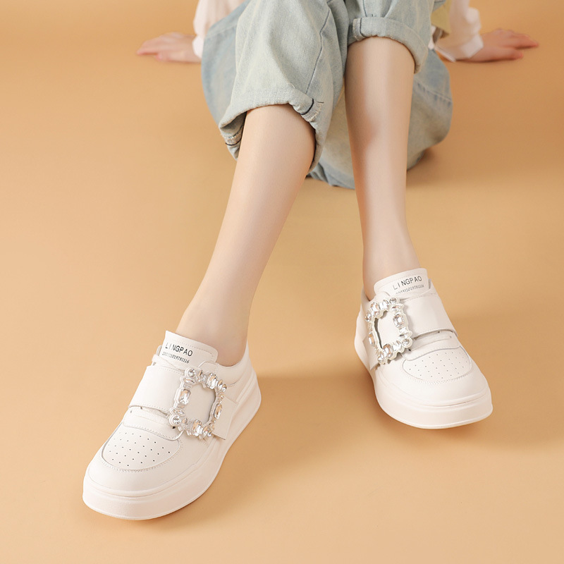 ファッションの板の靴の女性の2024秋の新型の百合は足の小さい水のドリルのマジックを現れてカジュアルな靴の白い靴を貼ります。