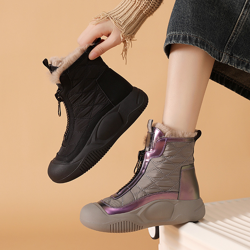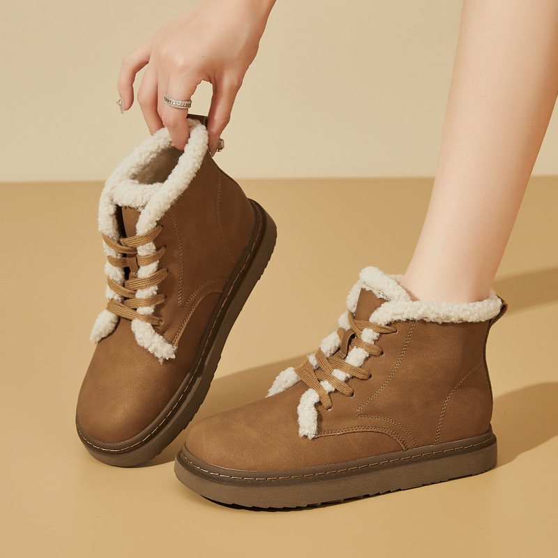 厚底万能カジュアルスノーブーツ レディース 2025冬新作 ハイカット 裏起毛 厚底 暖かい 快適 ショートブーツ