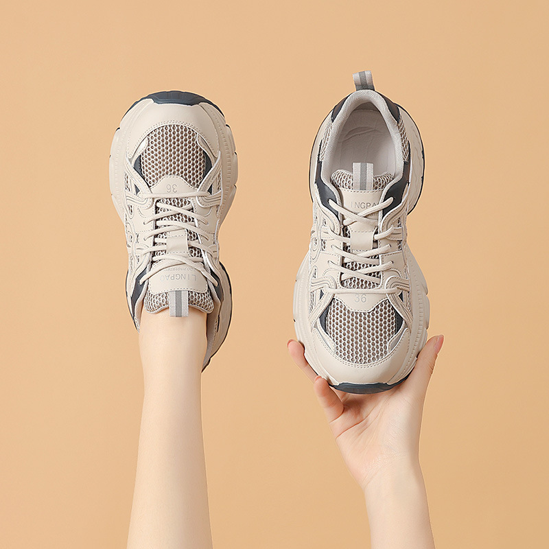 ファッションの爆発的なレトロなお父さんの靴の女性の2024秋冬の新型の通気性は厚い底を合わせて高くなって運動のカジュアルな靴を作ります。