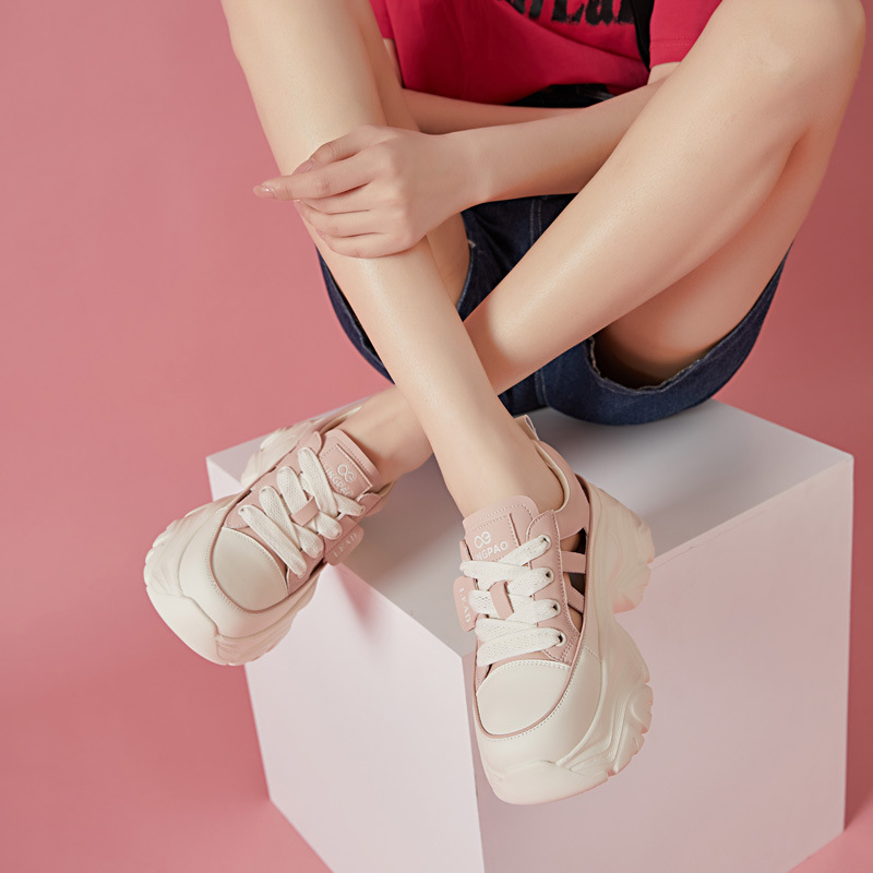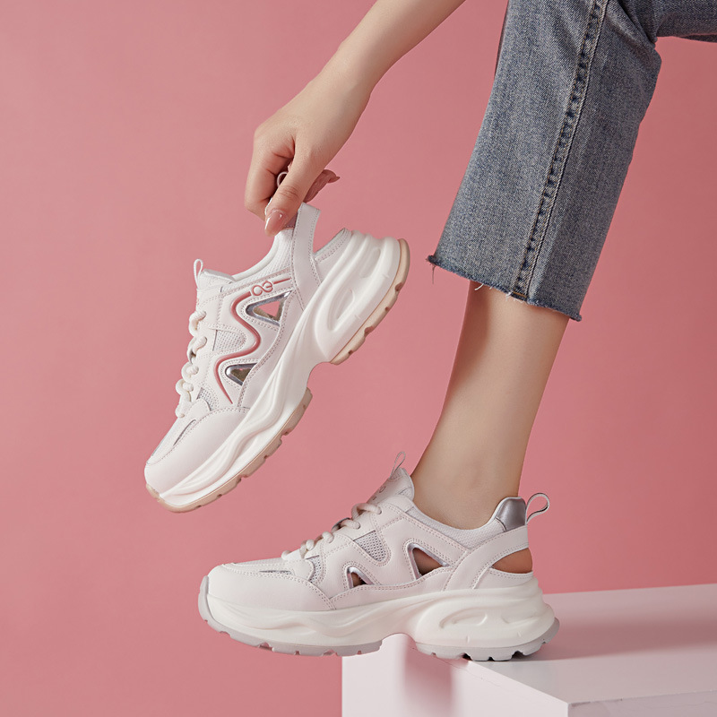 2025 夏の新スタイル本革ファッション厚底通気性お父さん靴女性のための多用途中空カジュアルシューズキャンパス人気トレンド