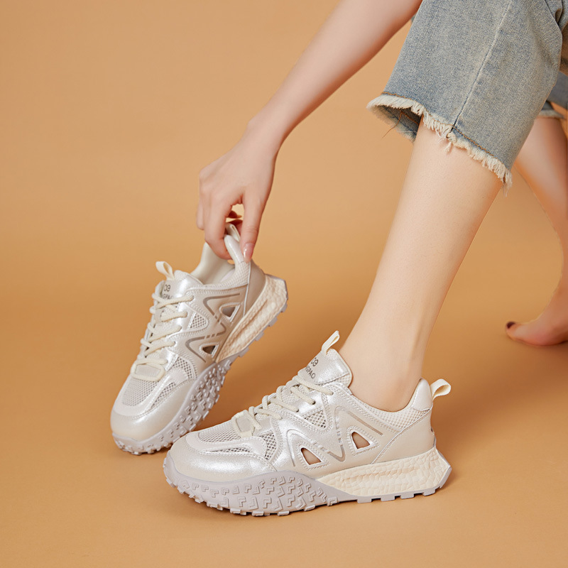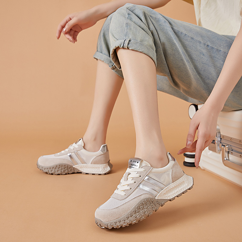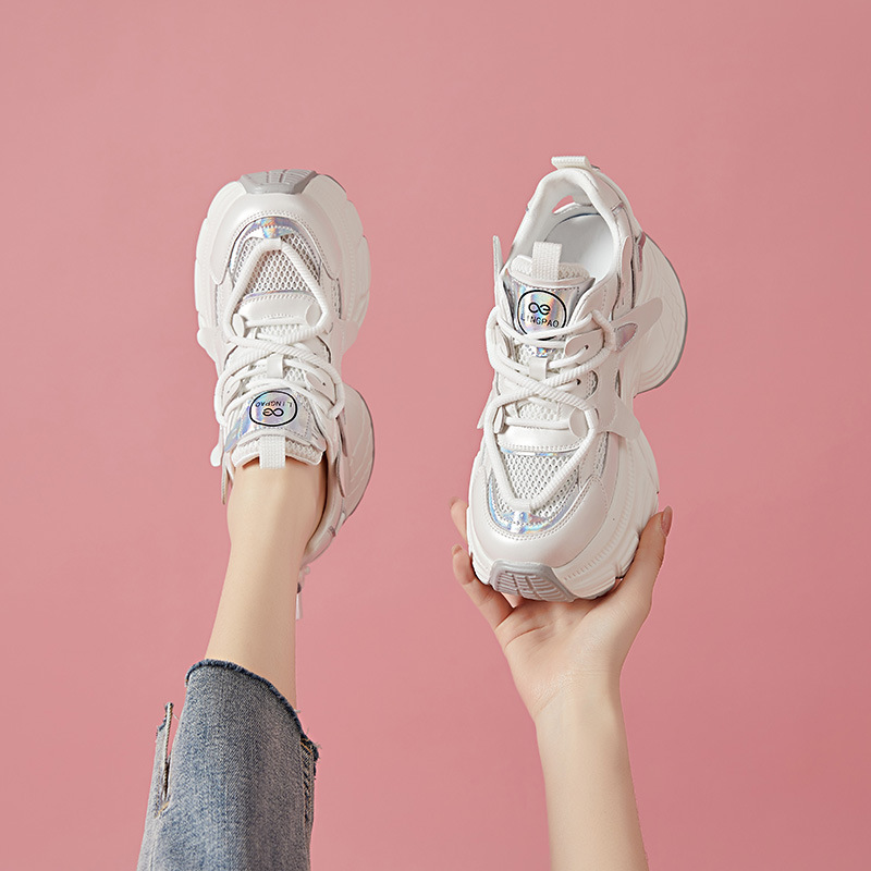 おしゃれな厚底通気性ダッドシューズ レディース キャンパスファッション 多用途カジュアルシューズ 軽量ランニングシューズ 2025年夏新作