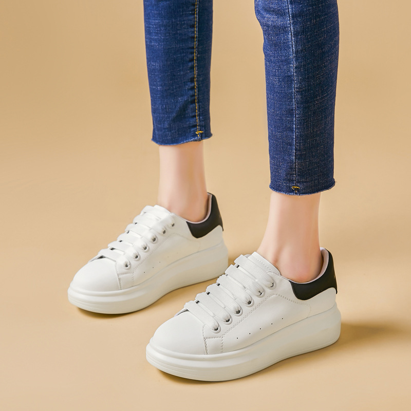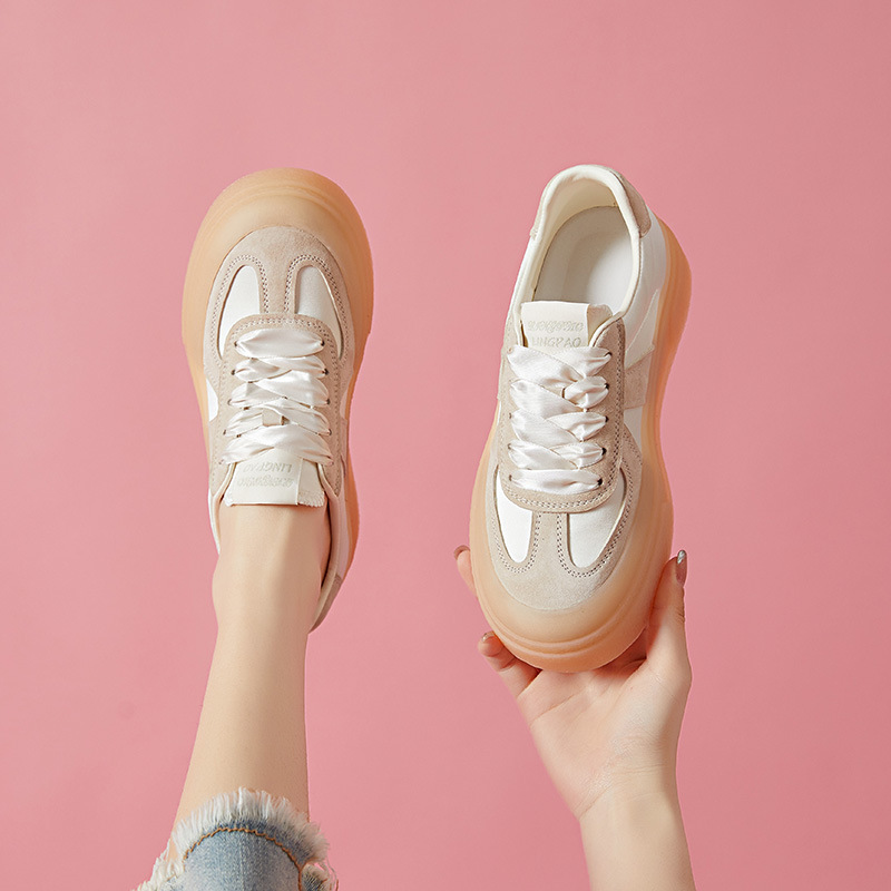 本革のファッションファッションは快適で、白い靴の女性2024夏の新型キャンパス風のカジュアルシューズが高くなります。