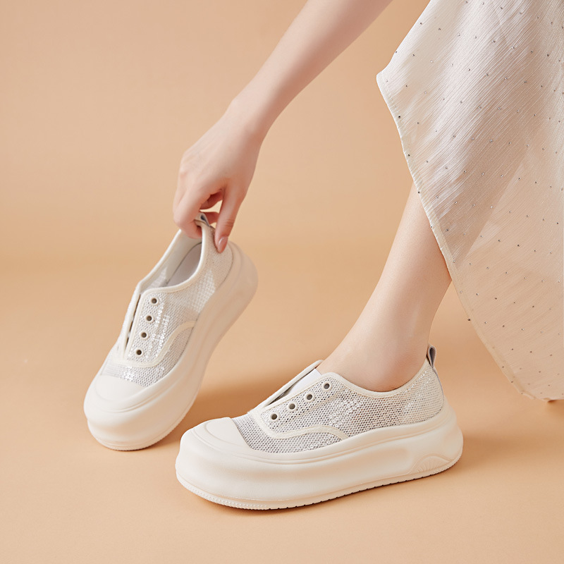 ファッショナブルな厚底の快適で通気性のある女性用メッシュシューズ 2025 夏の新しいキャンパススタイルの多用途の軽量カジュアルトレンディシューズ