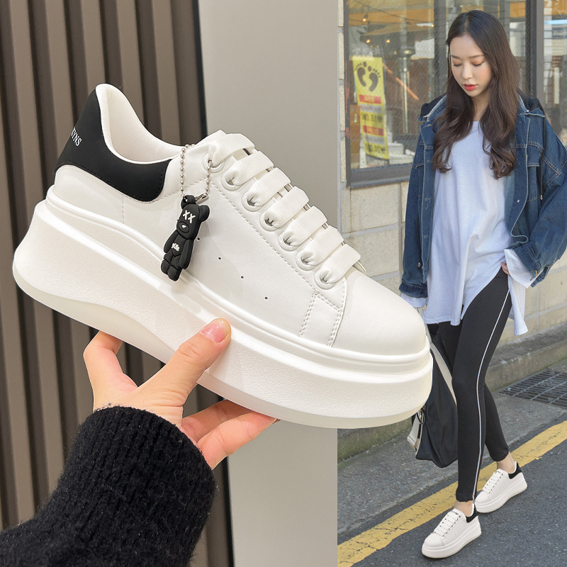 本革マックイーンシューズ レディース 2025年秋新作 インヒール 厚底プラットフォームスニーカー カジュアルスポーツシューズ ホワイト