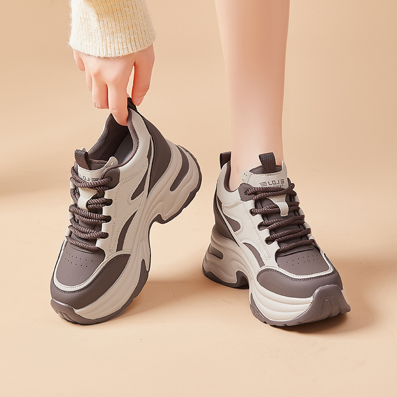 厚底増高本革ダッドシューズ レディース 2025年秋トレンド おしゃれで万能なカジュアルシューズ 新作軽量スポーツシューズ