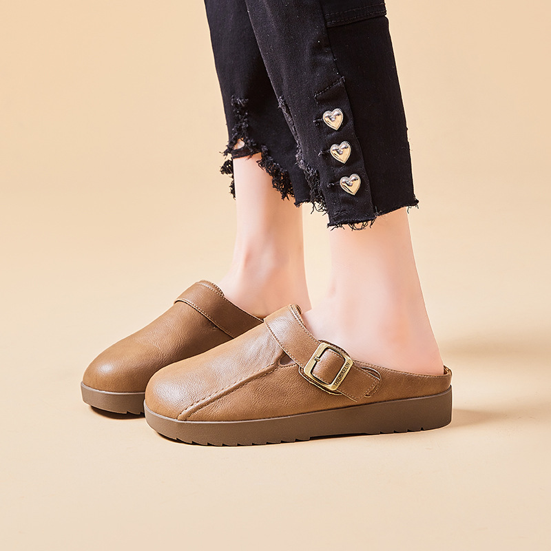 ボーケンシューズ2025春新作厚底トゥカバーハーフスリッパ、ファッショナブルでカジュアル、多用途、外履き、スリッポン、トレンドシューズ