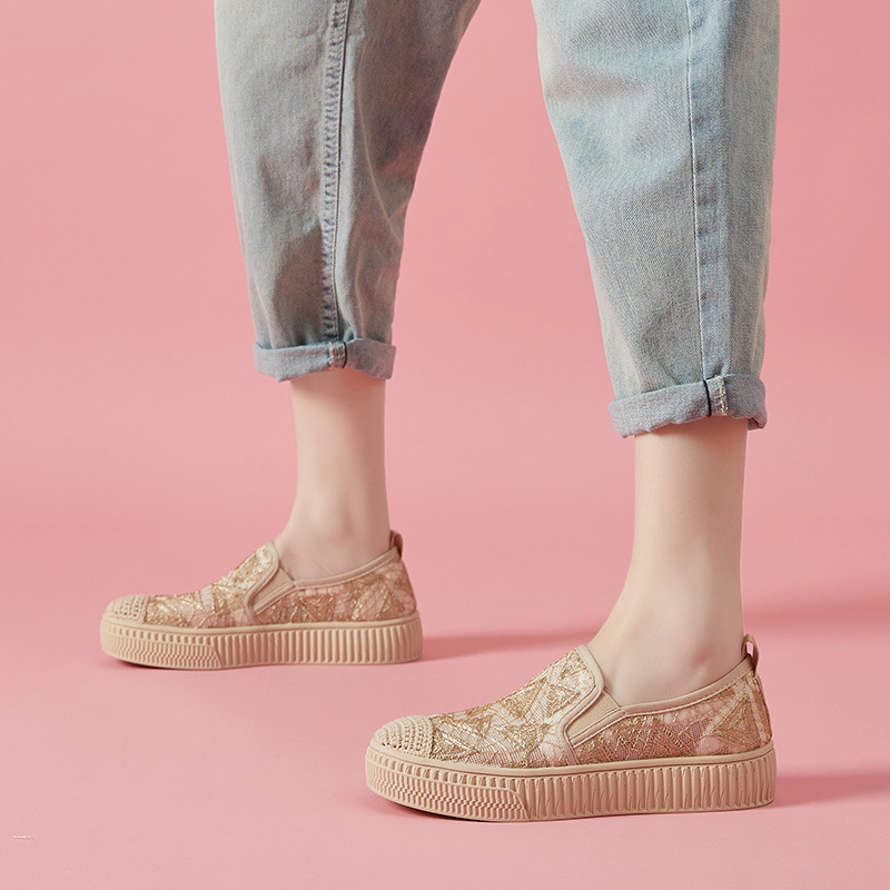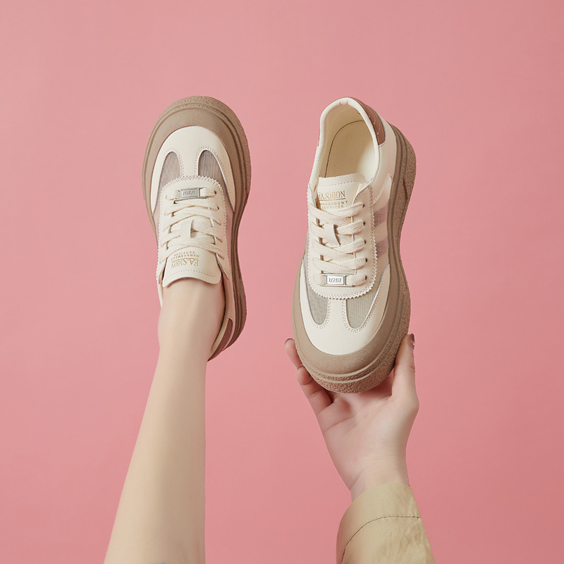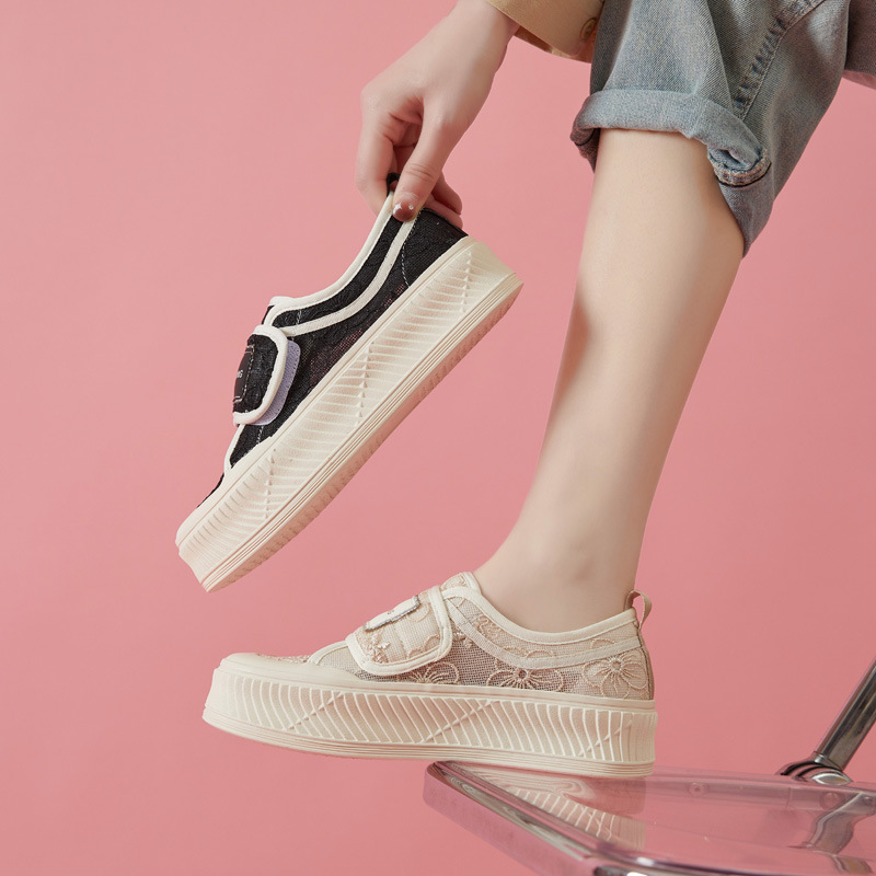 ファッショナブルで多用途な通気性のあるメッシュ道徳トレーニングシューズ女性用2025夏のキャンパス新しい厚底スニーカーカジュアルシューズトレンド