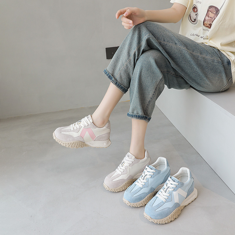 徳訓靴の女性2025春の厚い底が高くなりました。お父さんの靴のレトロな通気靴のinsファッションはスポーツシューズに似合います。