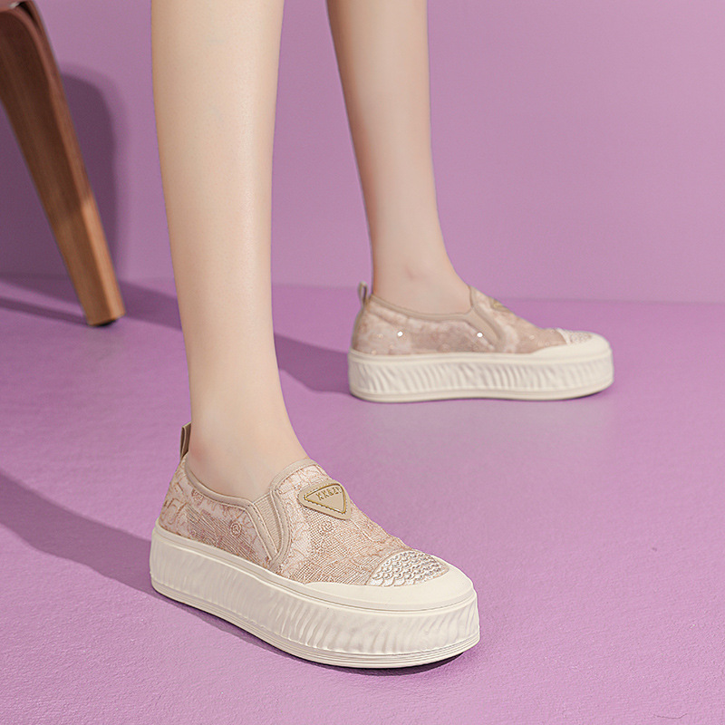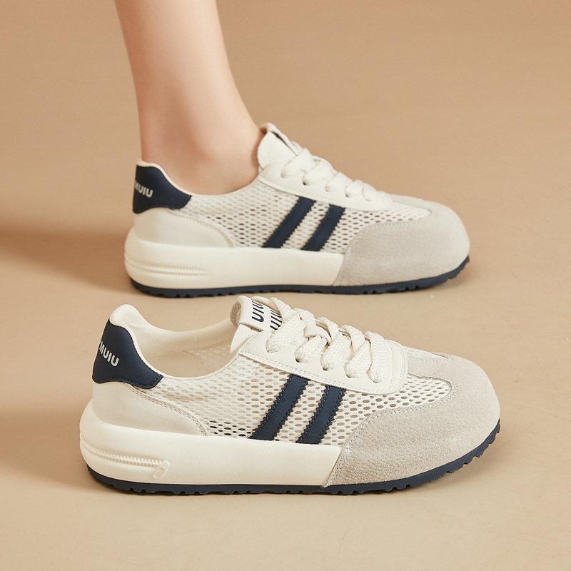 2025年夏新作 レディース 厚底 シンプルで快適な万能シューズ メッシュ素材 通気性 レース カジュアル スニーカー インス風