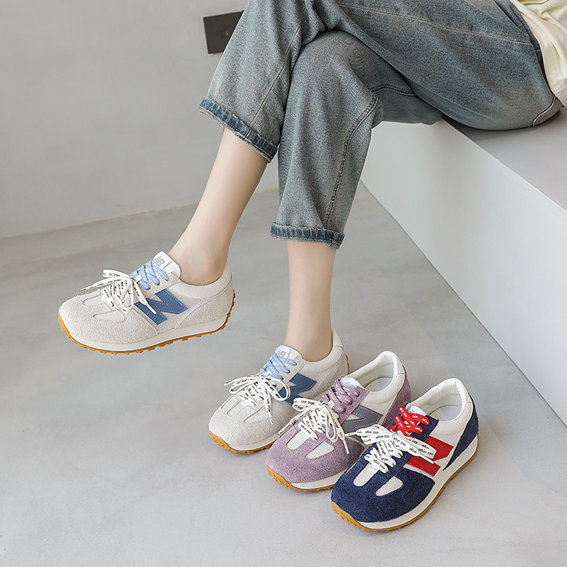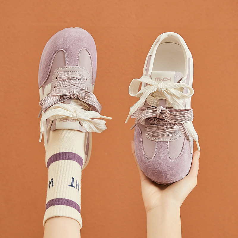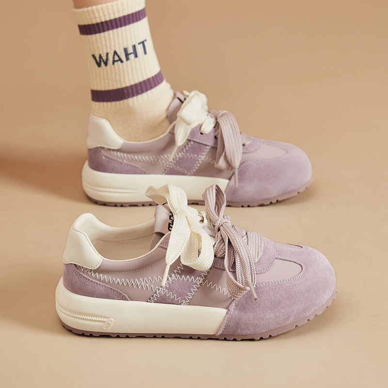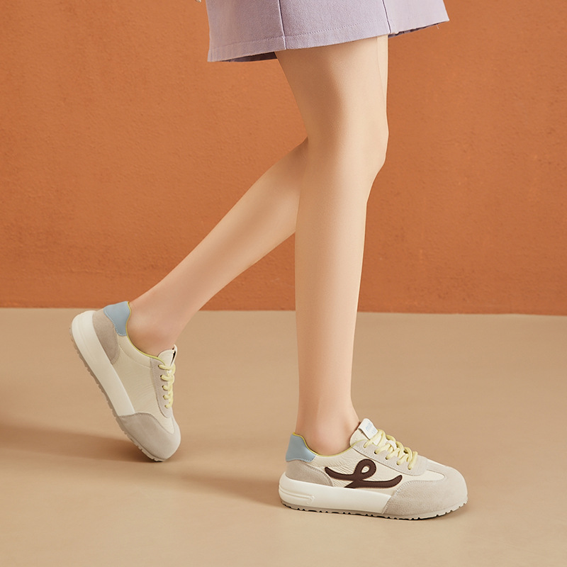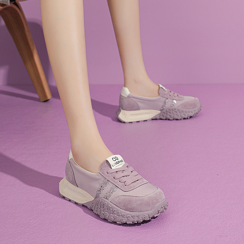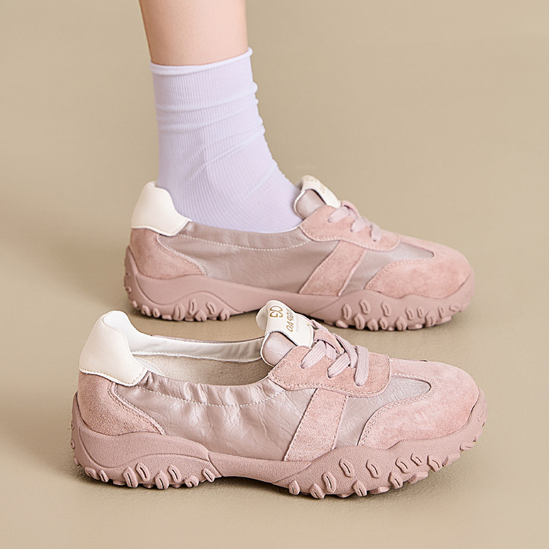 厚い底の徳訓靴の女性2025春の新型は通気性の柔らかい底の運動風の快適なカジュアルシューズの潮流に合わせて通勤します。