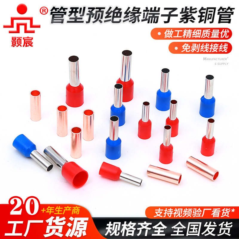 管型予備絶縁端子紫銅管針形予備絶縁冷圧端子配線銅ピンメーカー卸売り