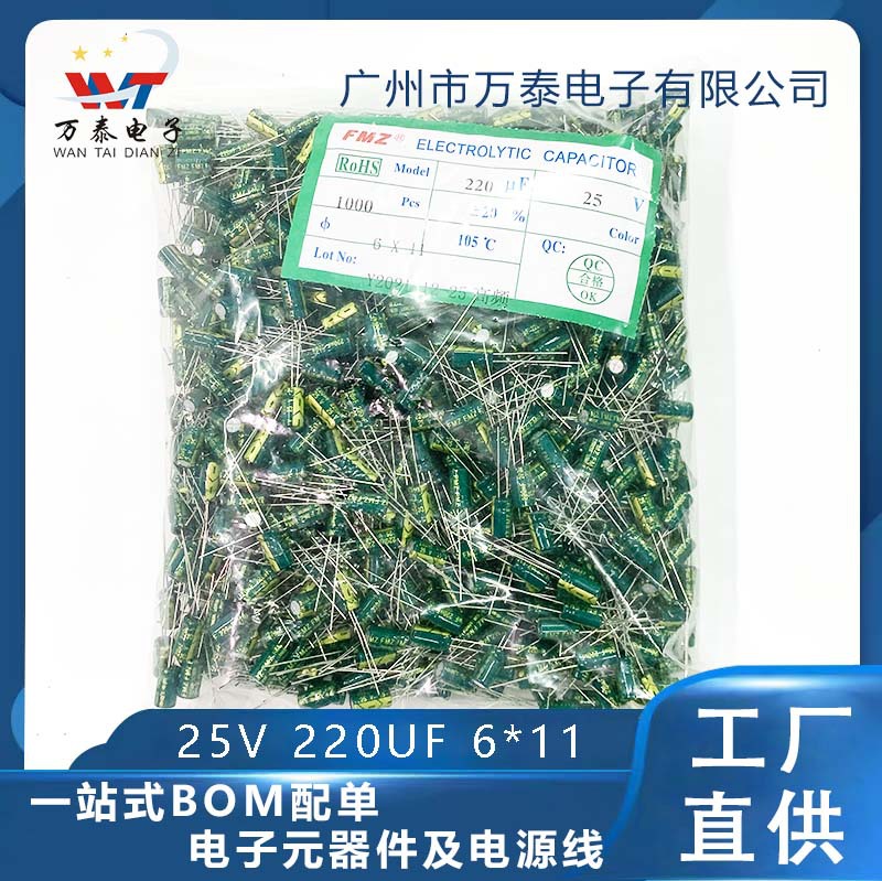 220uf25vインラインアルミ電解コンデンサ25v220uf高周波低抵抗体積6*11電解コンデンサ