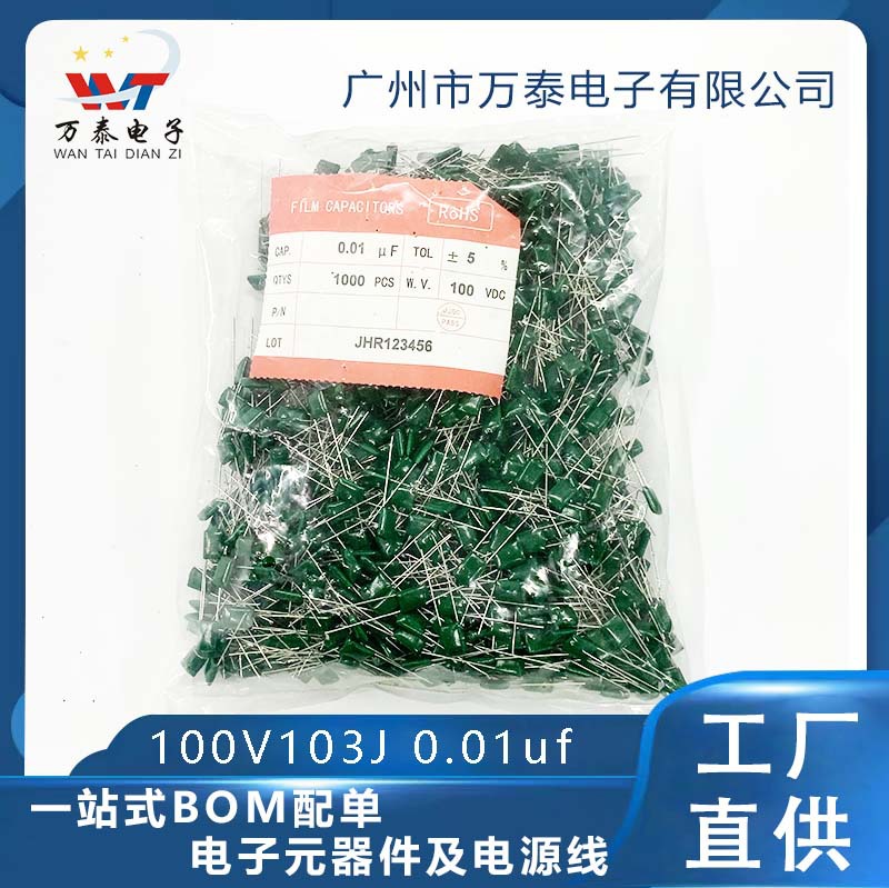 ポリエステルコンデンサー2j103 2a 103j 100v103j 0.01ufグリーン直挿しポリエステルコンデンサー