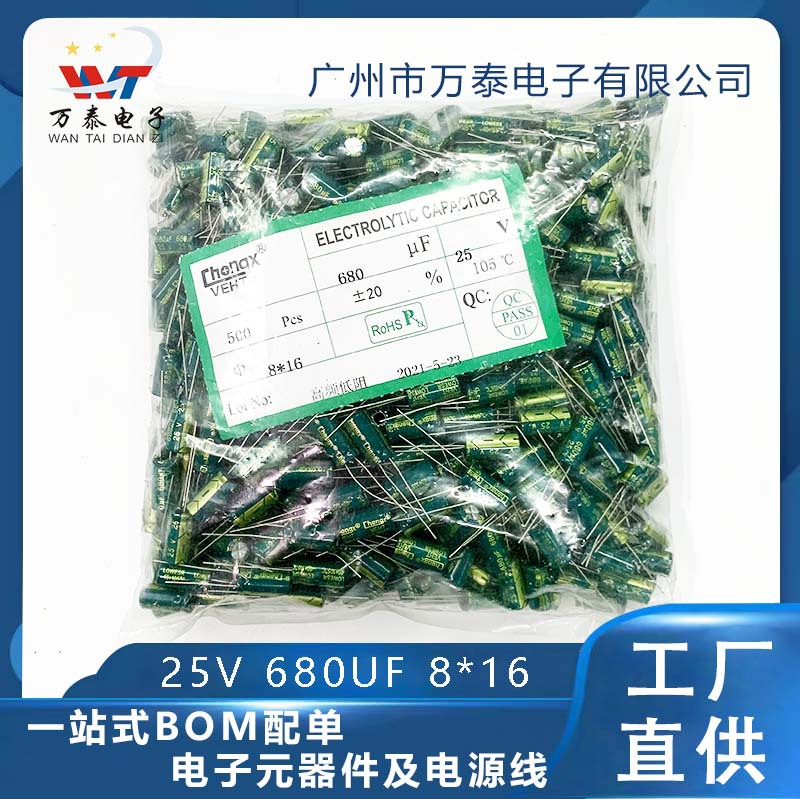 680uf25vインラインアルミ電解コンデンサ25v680uf高周波低抵抗体積8*16電解コンデンサ