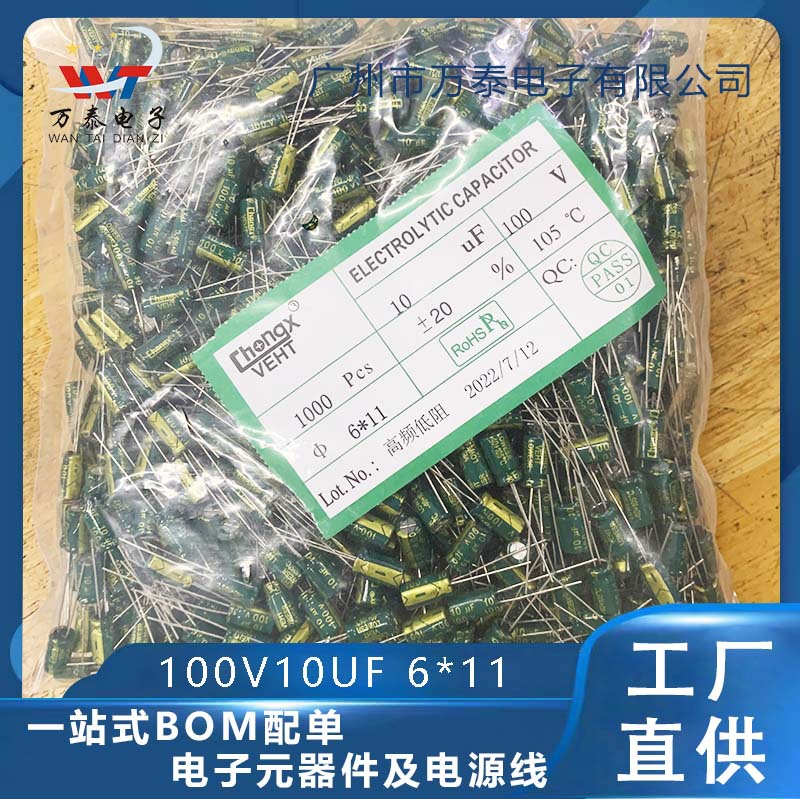 10uf100vインラインアルミ電解コンデンサ100v10uf高周波低抵抗体積6*11電解コンデンサ