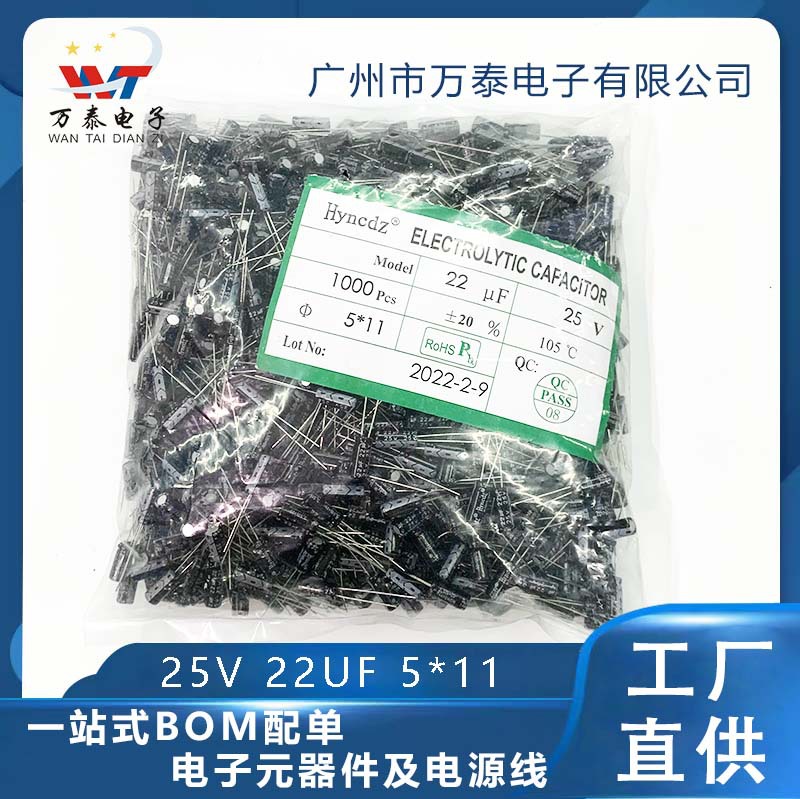 22uf25vインラインアルミ電解コンデンサ25v22uf高周波低抵抗体積5*11電解コンデンサ