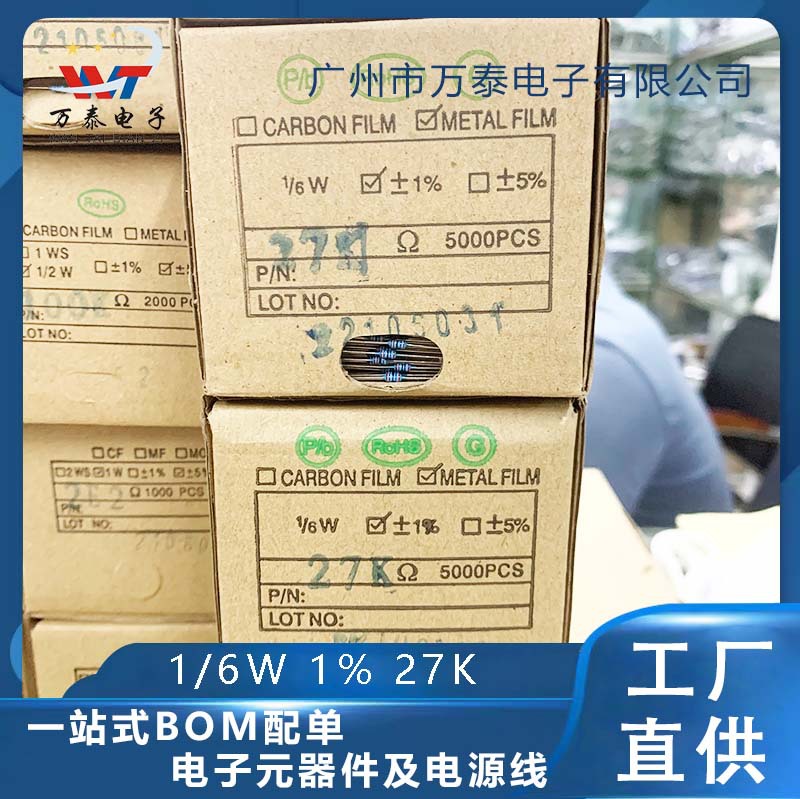 1/6w金属膜抵抗1% 27k直挿色環線抵抗全シリーズ