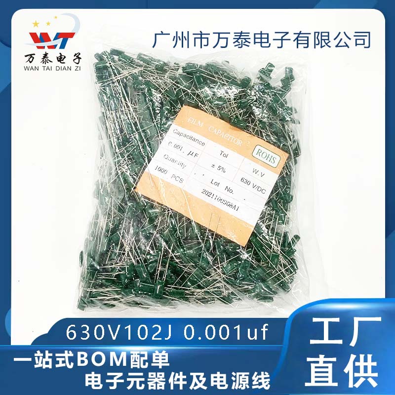 2j102j 630v102j 1nf0.001ufグリーンインラインコンデンサーポリエステルコンデンサー