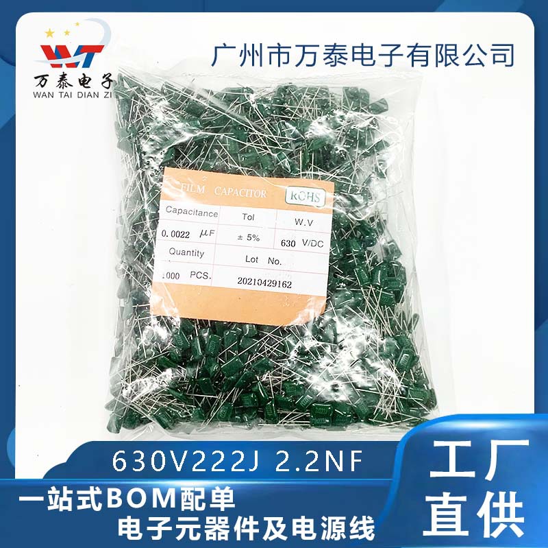 フィルムコンデンサー2j222j ± 5% 2.2nf環境保護グリーンフィルムコンデンサー630v222jポリエステルコンデンサー