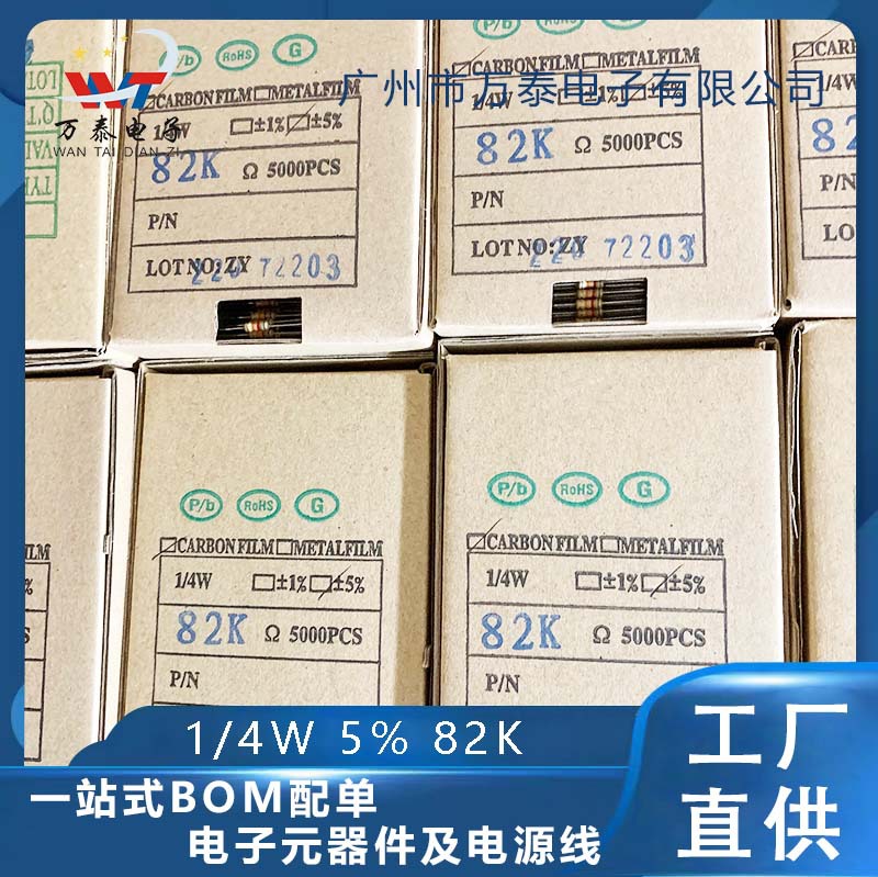 1/4w金属膜抵抗5% 82kインライン金属膜抵抗全シリーズ