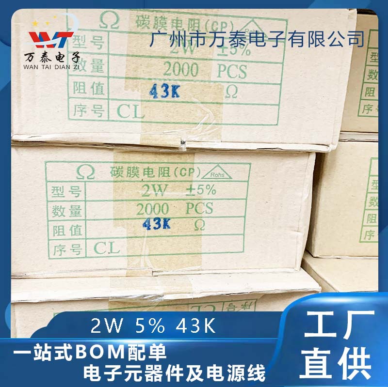 2w金属膜抵抗5% 43k 43rインラインカラーリング抵抗全シリーズ