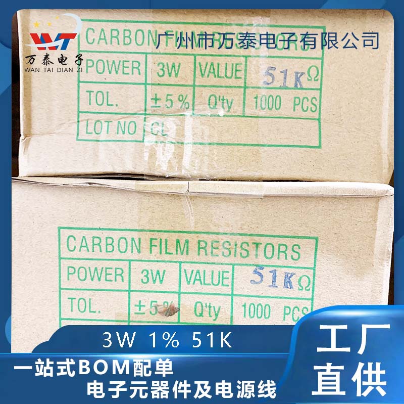3w金属膜抵抗1% 51kω インラインバルク抵抗全シリーズ