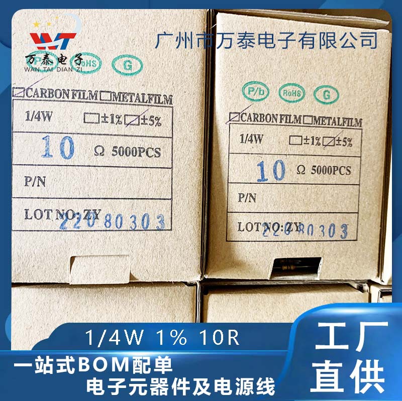 1/4w金属膜抵抗1% 10rインラインバルクカラーリング抵抗全シリーズ