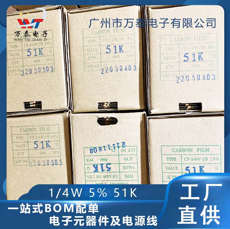 1/4w金属膜抵抗5% 51kインライン金属膜抵抗全シリーズ