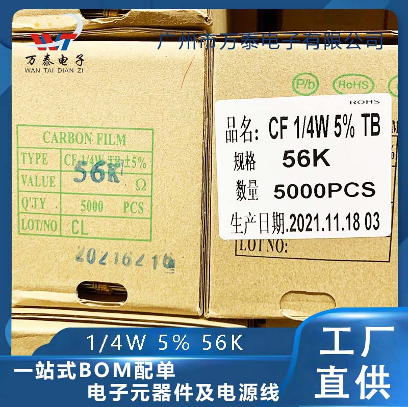 1/4w金属膜抵抗5% 56kインライン金属膜抵抗全シリーズ