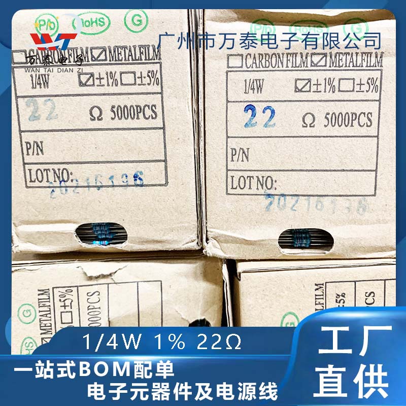 1/4w金属膜抵抗1% 22rインライン金属膜抵抗全シリーズ