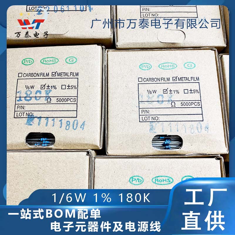 1/6w金属膜抵抗1% 180k 180rインライン金属膜抵抗全シリーズ