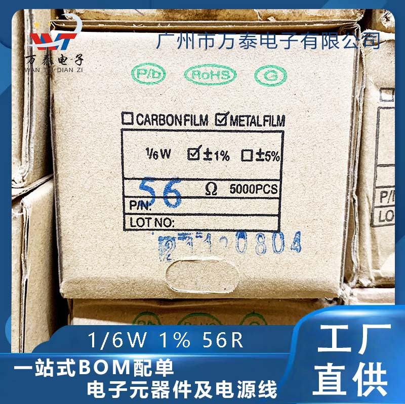 1/6w金属膜抵抗1% 5.6k 56rインライン金属膜抵抗全シリーズ