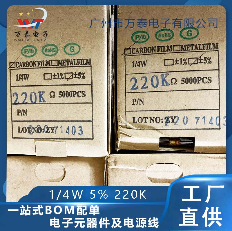 1/4w金属膜抵抗5% 220kインライン金属膜抵抗全シリーズ