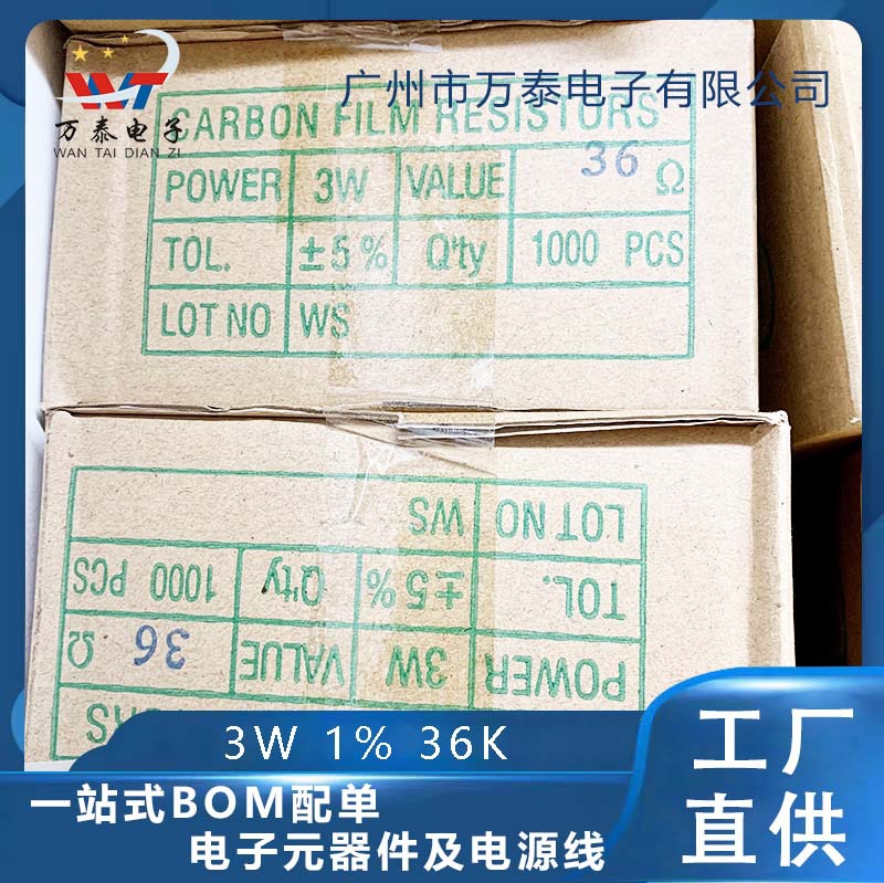 3w金属膜抵抗1% 36kω 直挿しバルク五色リング抵抗全シリーズ