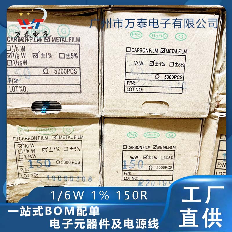 1/6w金属膜抵抗1% 150rインライン金属膜抵抗全シリーズ
