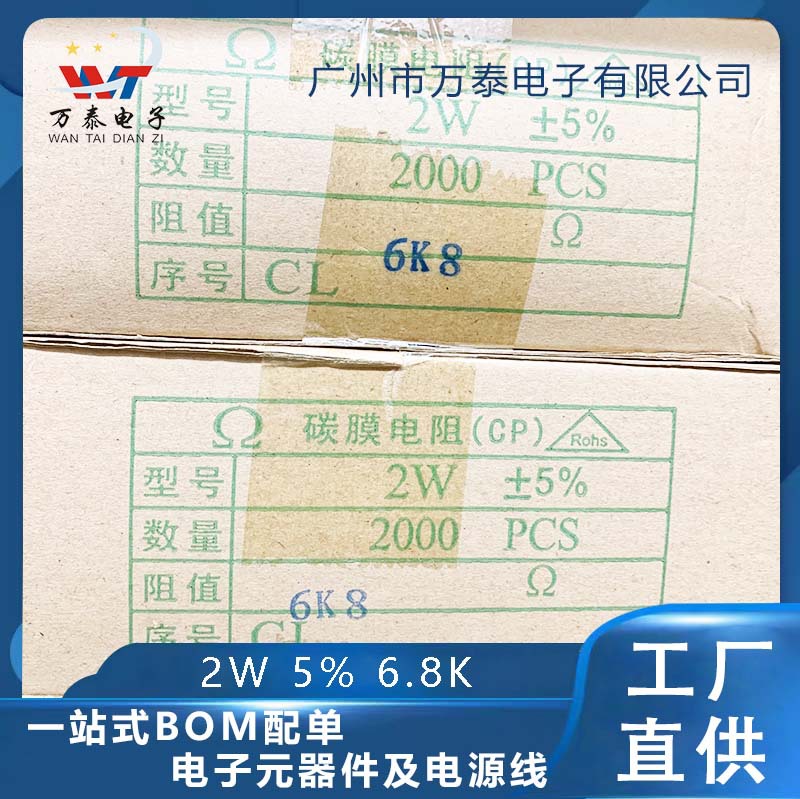 2w金属膜抵抗5% 6.8k 6k 8直挿しバルク五色リング抵抗全シリーズ