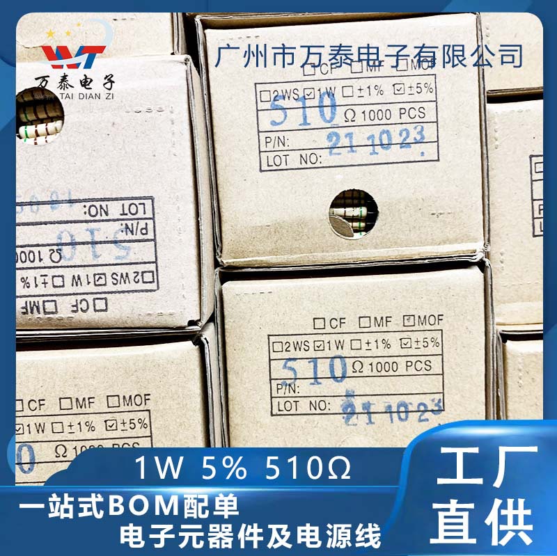1w金属膜抵抗1% 510r欧510ω 直挿しバルク抵抗全シリーズ