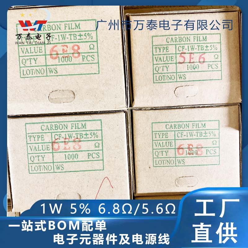 1w金属膜付き抵抗6.8r 6.8ω 5.6r 5.6ω 精度5% 四色リング抵抗