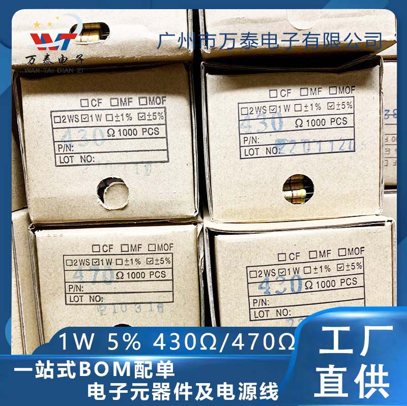 1w金属膜付き抵抗430r 430ω 精度5% 470r 470ω 四色リング抵抗