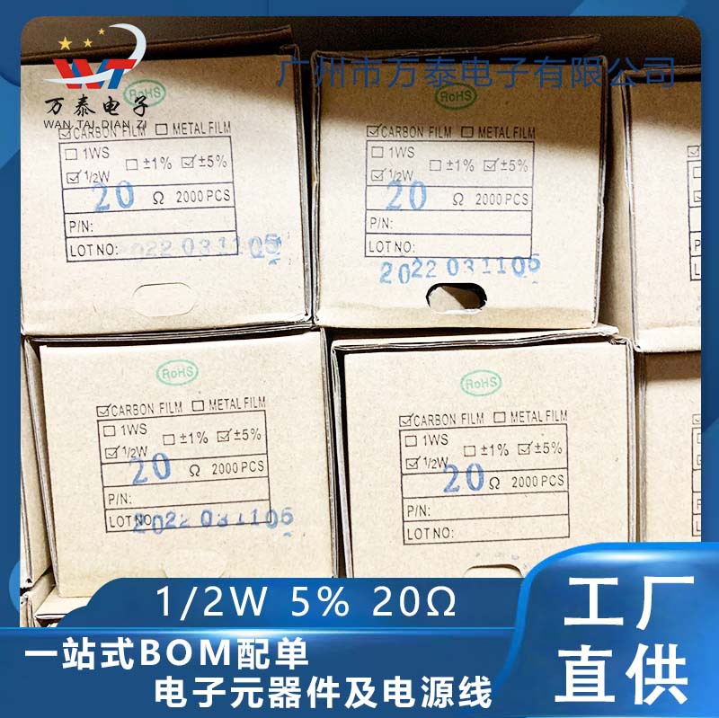 1/2w金属膜抵抗20k 20ω 5% 全シリーズインライン抵抗