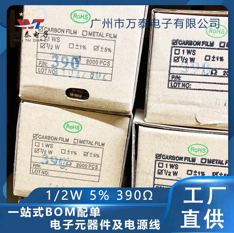 1/2w金属膜抵抗390ユーロ390ω 5% 直挿し四色リング抵抗全シリーズ