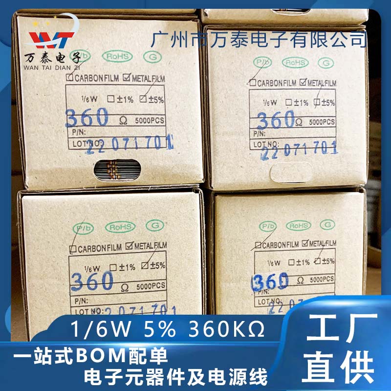 1/8w 1/6w金属膜抵抗5% 360krユーロ360kω インラインカラーリング抵抗