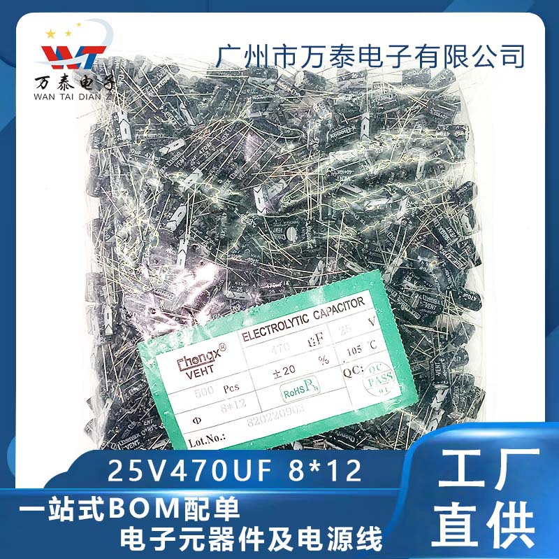 25v470ufインラインアルミ電解コンデンサ470uf25v 8*12高周波低抵抗プラグインコンデンサ